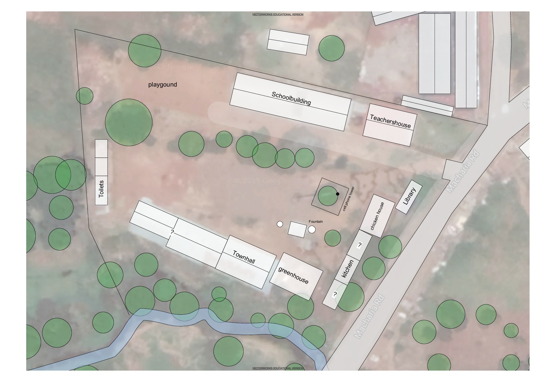 The site itself is located next to a main road and slopes quiete substantially towards the river.